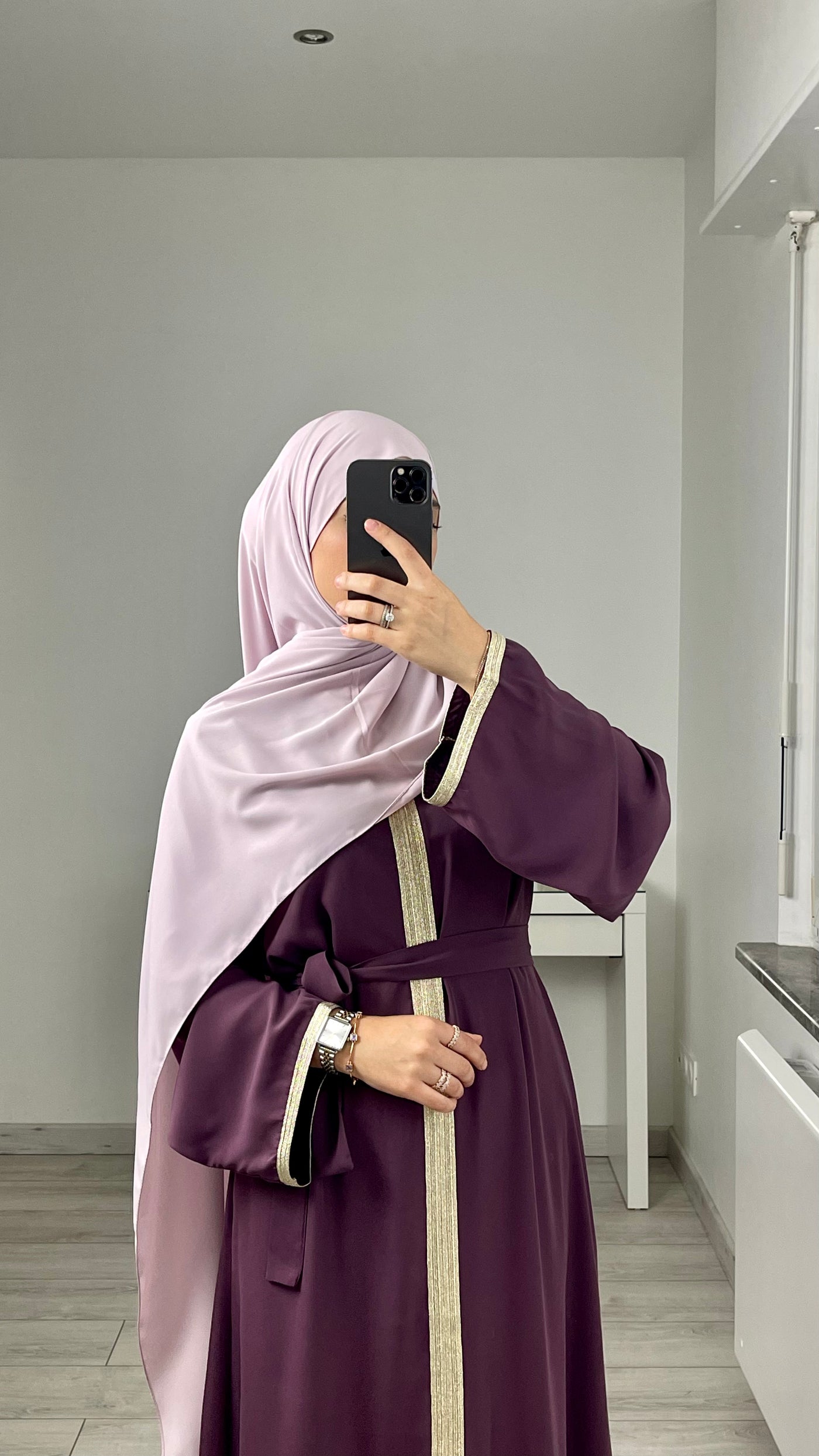Abaya mit goldenem Besatz - T2: 40/44 / Violett
