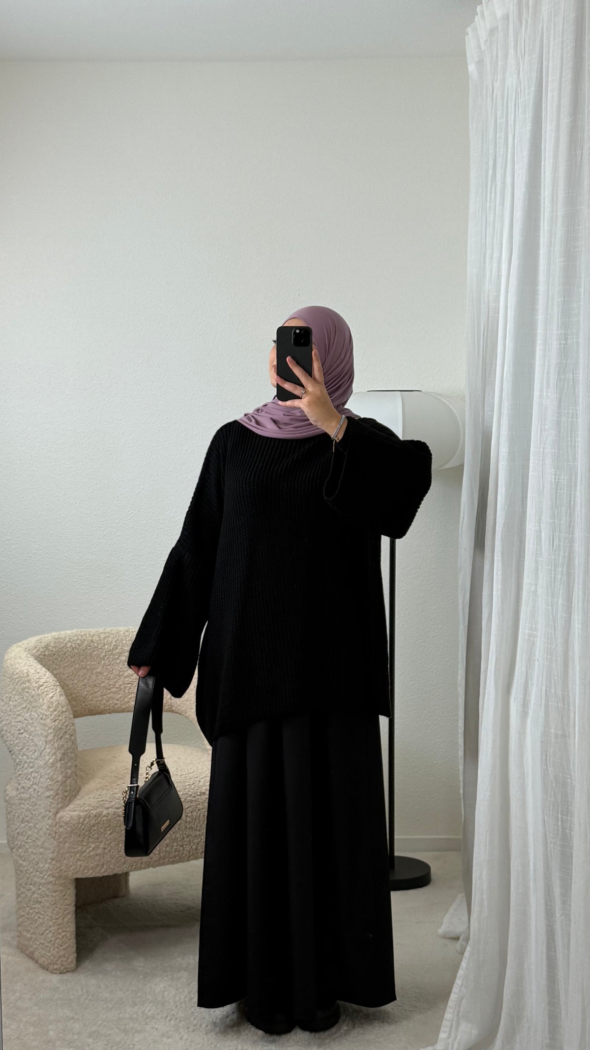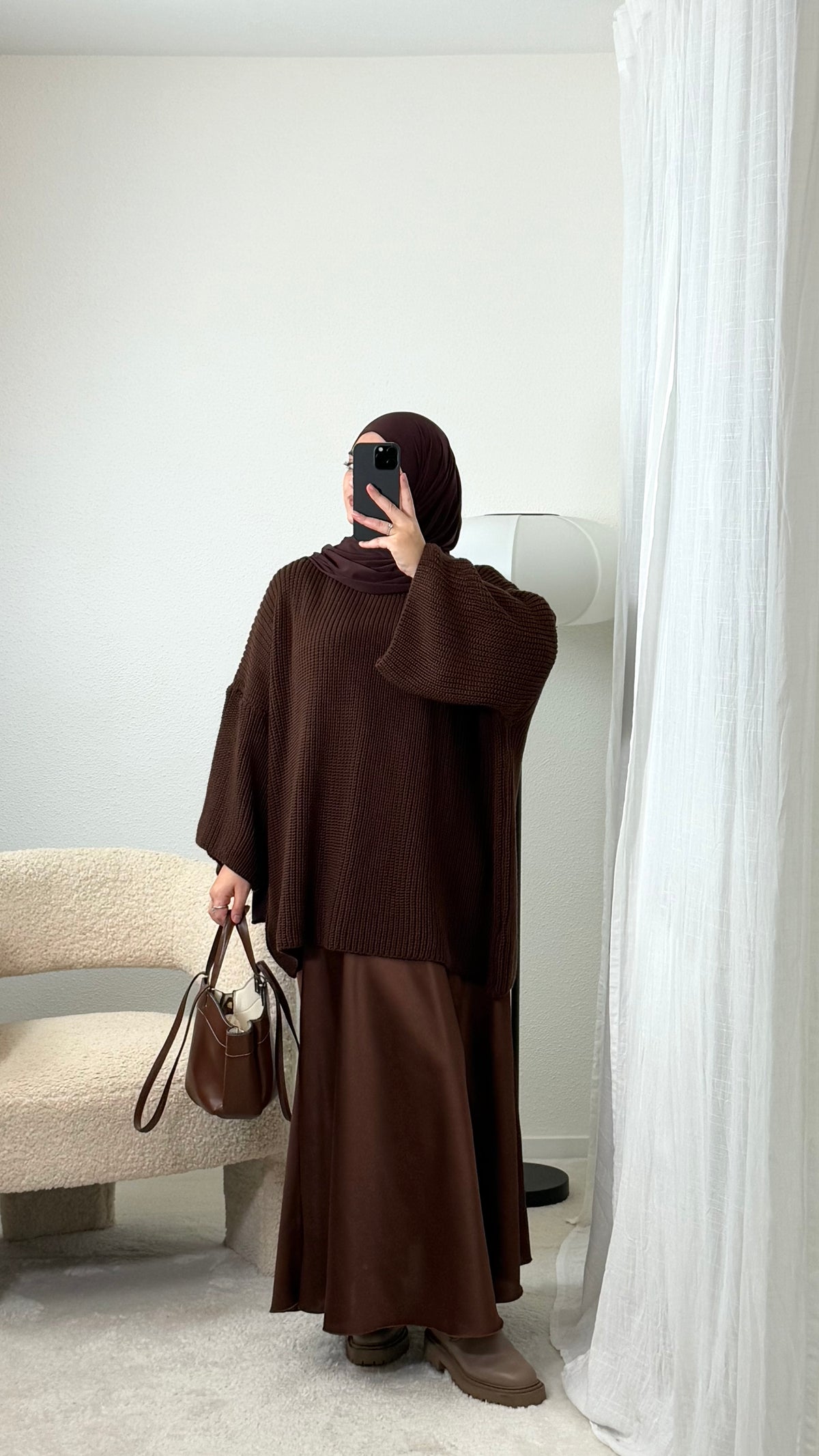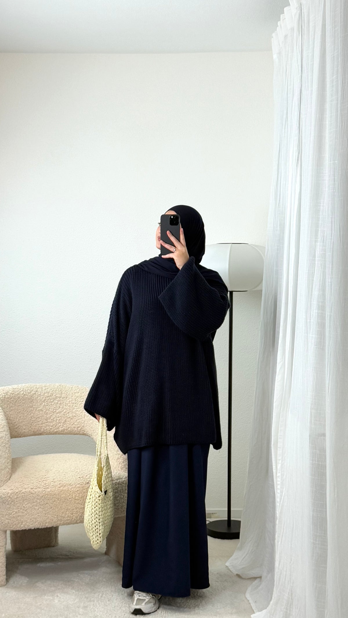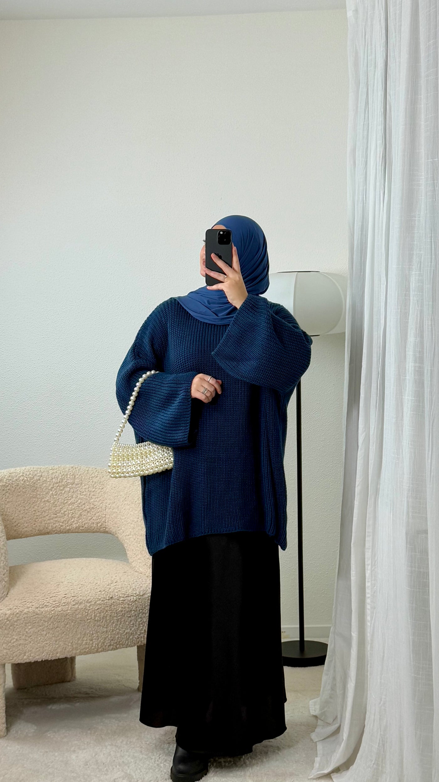 Pull en grosse maille, manche évasée, col ronds, coupe oversize.